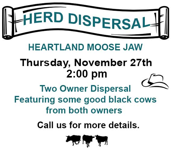 I would like to thank the Producers and Buyers for the business that is brought to Heartland Livestock Moose Jaw our auctions are not possible without both coming to the auction barn.