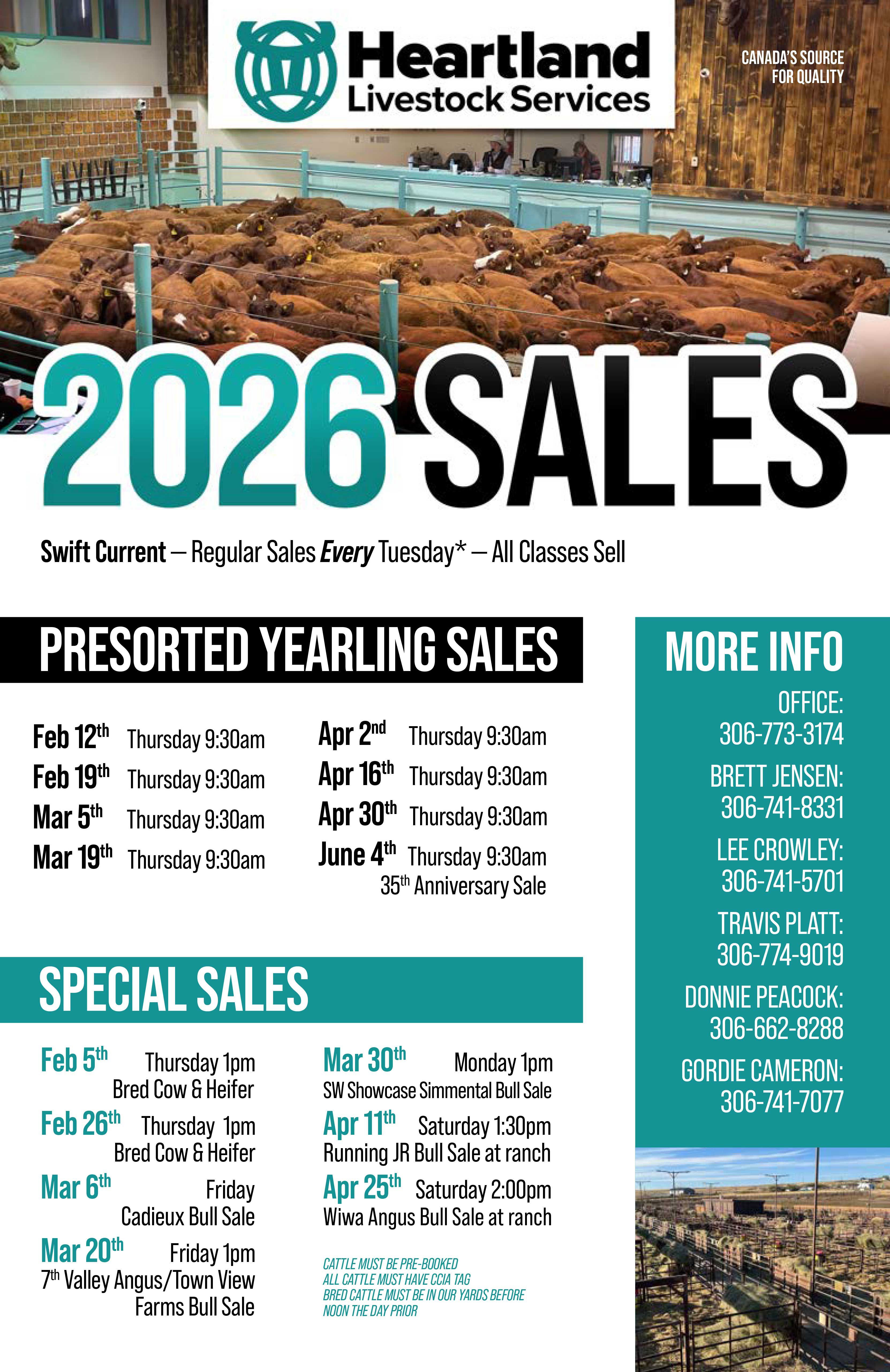 All cattle must be in our yard by 4:00pm the day prior to the sale for presorting. |