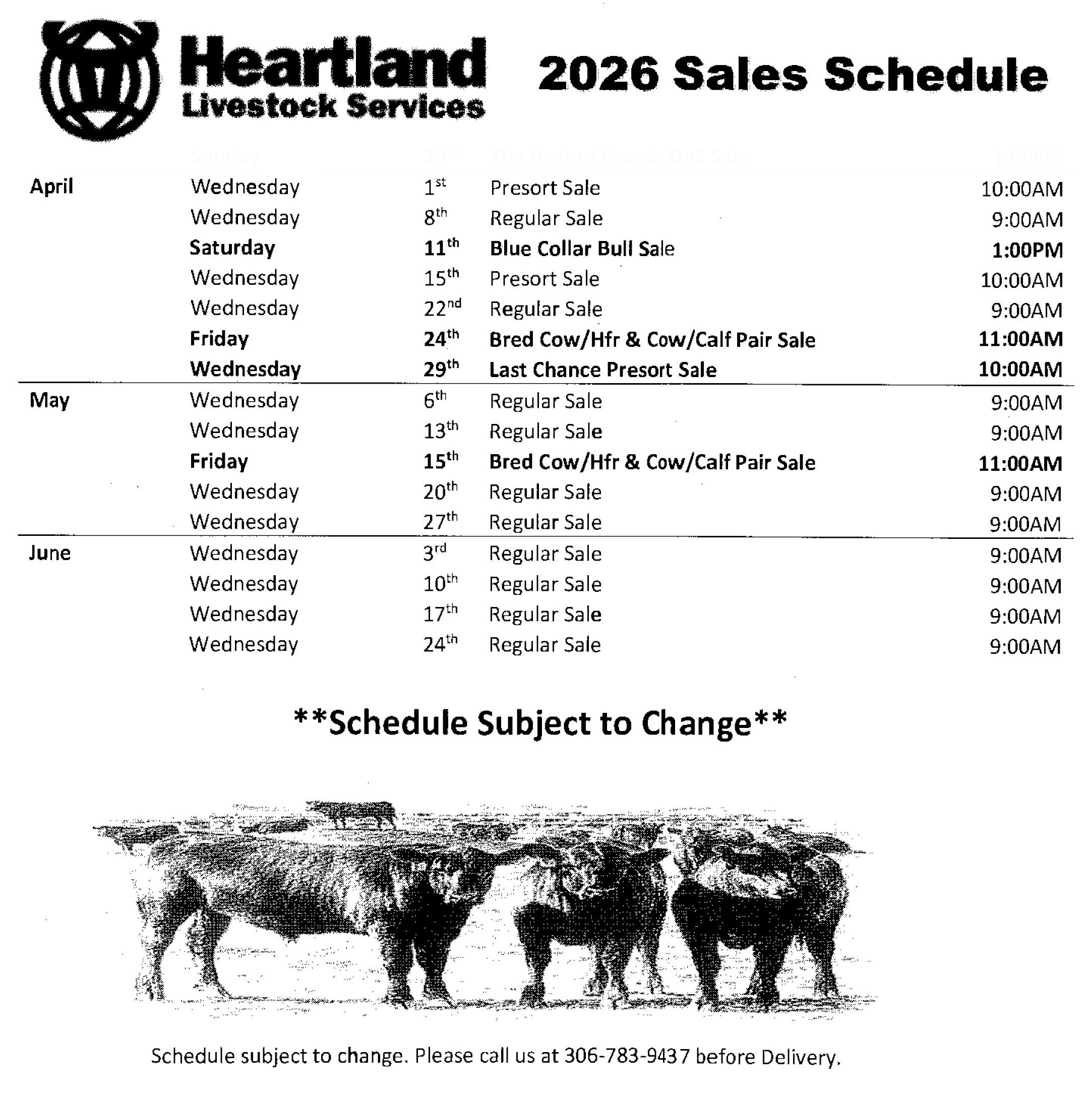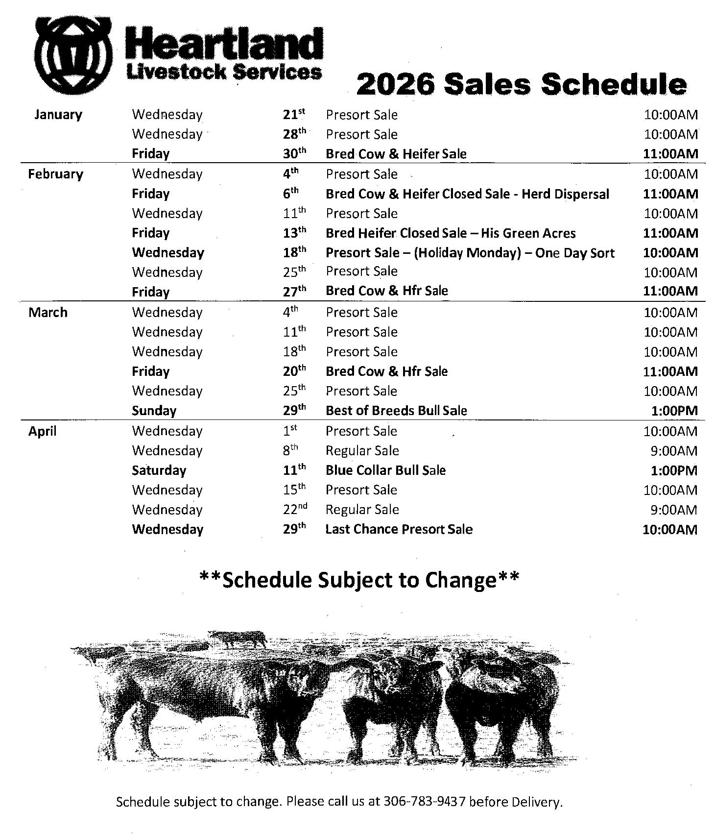 | Presorted Cattle must be booked in advance and in the yards by 4:00pm on Monday and Tuesday prior to the sale. Please put your mileage on the manifest. |